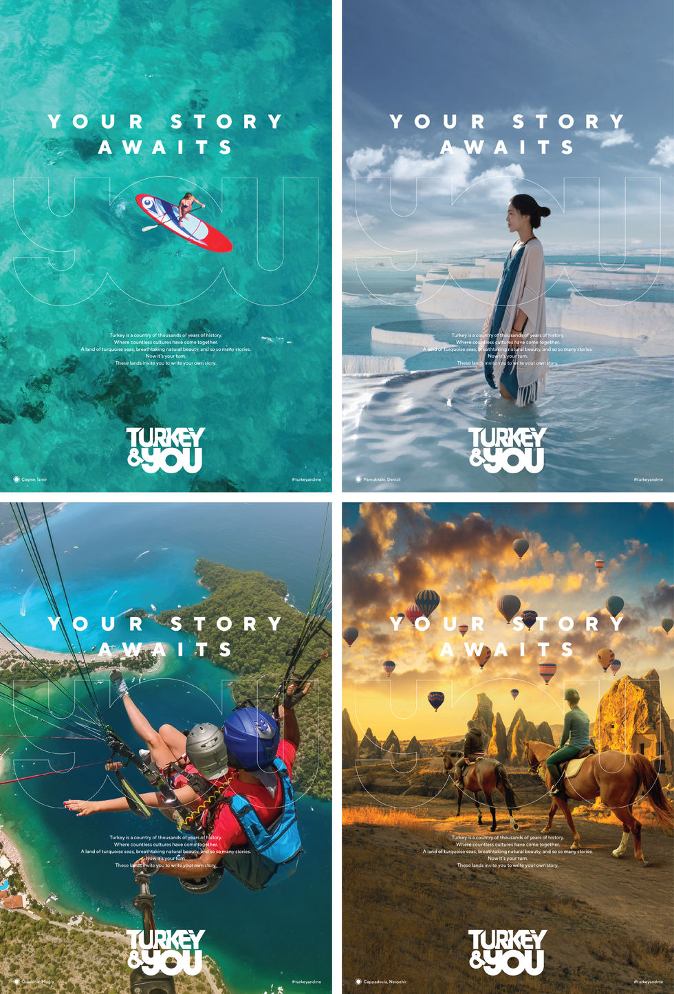 For this competitive pitch project prepared for the Turkish Ministry of Tourism, I managed the entire design process from concept to completion. I designed and oversaw all visuals, including the logo. With these designs, we won the pitch. As part of the project, I created Turkey’s new logo and integrated it with the slogan, turning it into a full-fledged campaign.